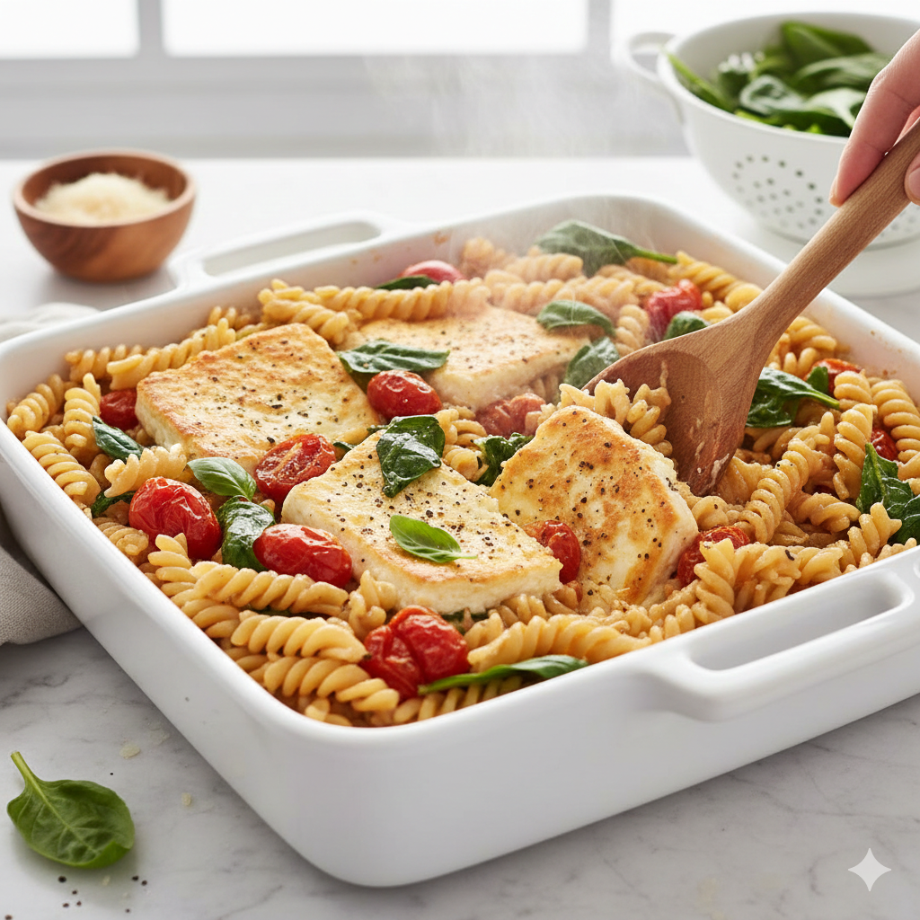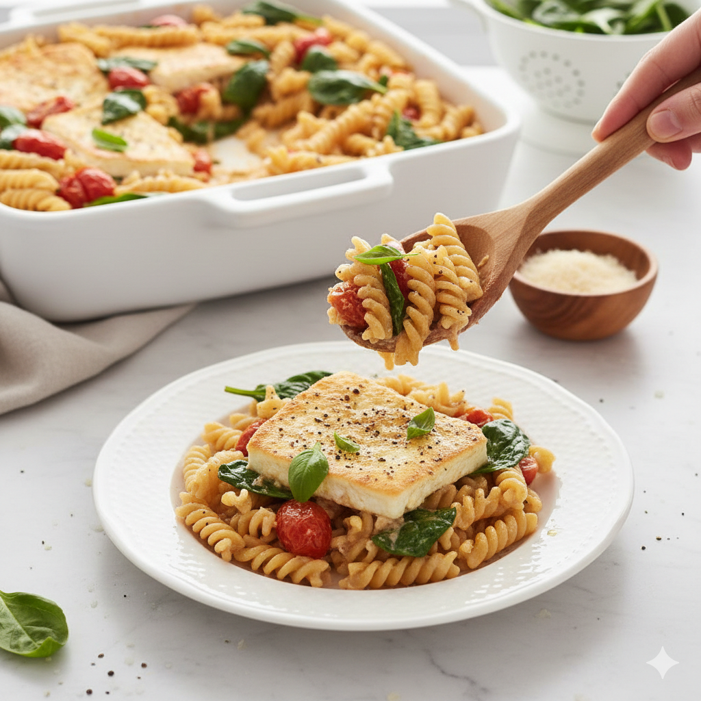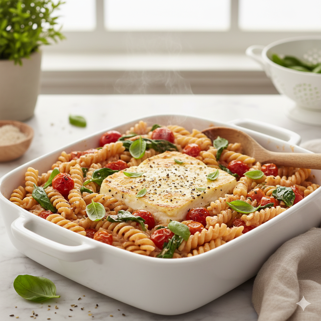 “If you haven’t tried the viral Baked Feta Pasta yet, you are missing out on the ultimate lazy dinner. This version is lightened up with whole wheat pasta and extra veggies, making it a perfectly balanced, healthy meal. You literally throw everything into one dish, bake it, and stir. It’s creamy, tangy, and requires almost zero effort.”